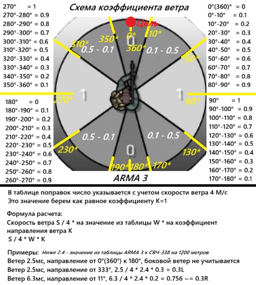 Расчет боковых поправок на ветер в симуляторе ARMA 3Расчет боковых поправок на ветер в симуляторе ARMA 3