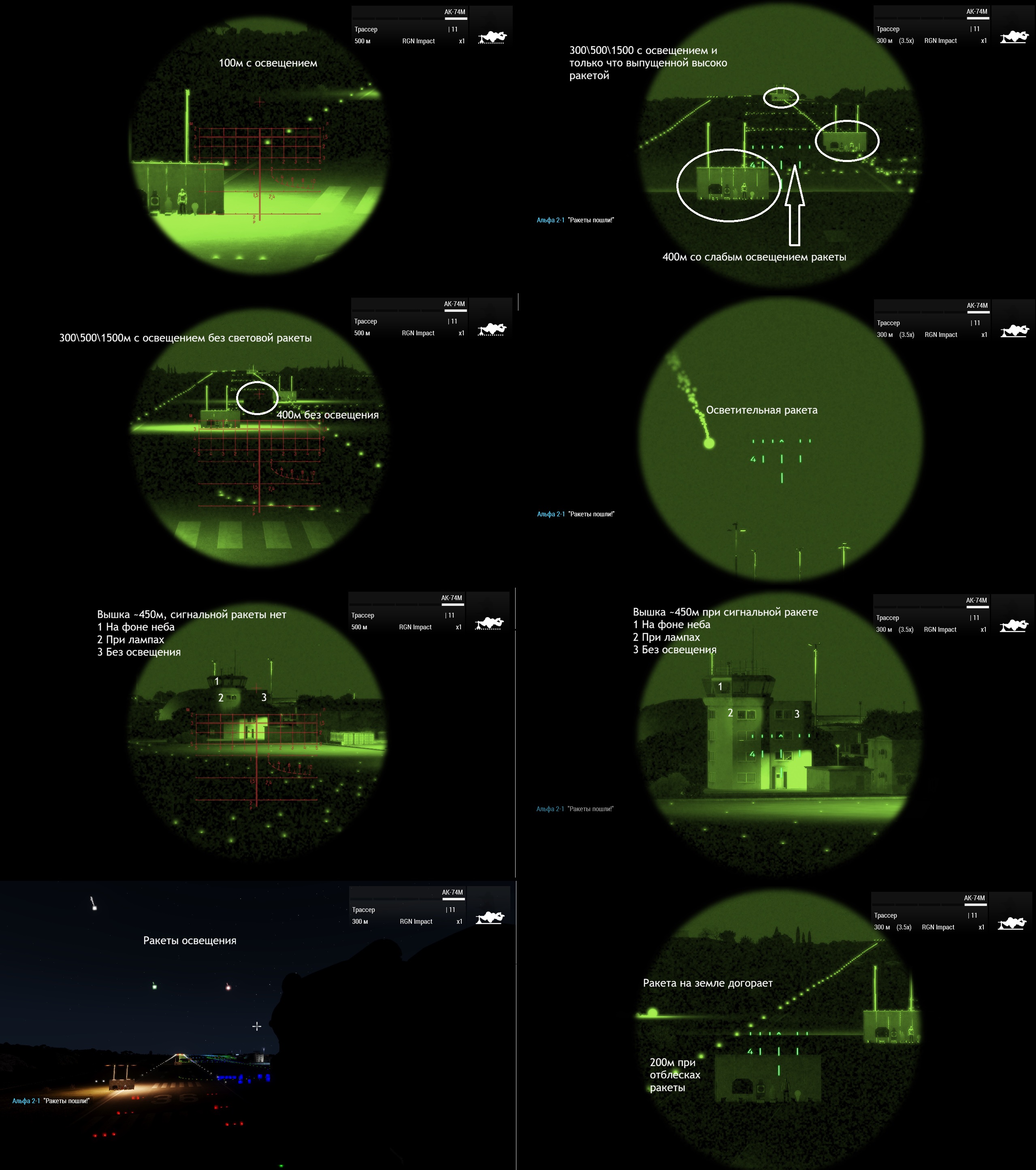 Во включенном ПНВ вы увидите их работу