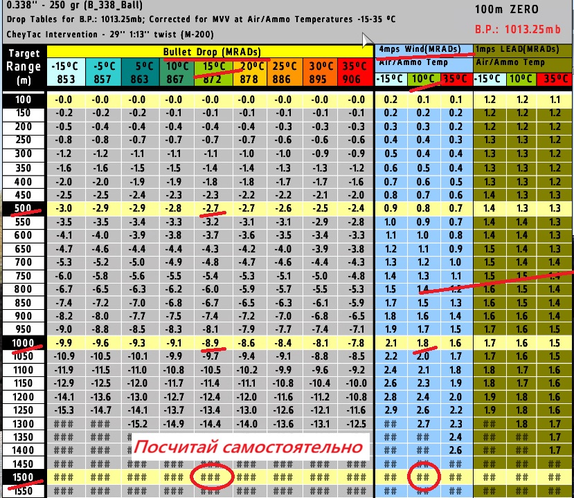 У вас должна быть таблица поправок на ветер к дистанциям: Схема коэффициента направления ветра по циферблату относительно стрелка и цели Разверните циферблат механических часов к цели так, чтоб цель была напротив 12 Например, у вас имеется таблица поправок на средний ветер 4 метра в секунду к дистанциям При 15 градусах значения боковых поправок при ветре 4 мс указаны в mil: Измеряем силу ветра и направление, допустим: Формула расчета относительно таблицы с значениями ветра со скоростью 4 метра в секунду: Т.е. из примера выше, поправка на фронтальный ветер по табличным значениям слева будет: