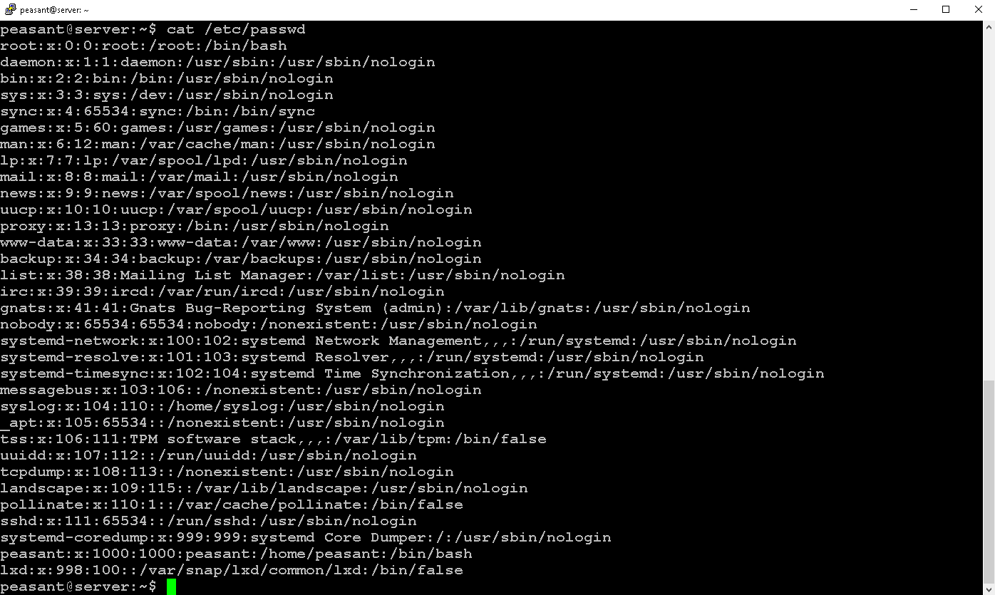 У псевдопользователей указана псевдооболочка - /usr/sbin/nologin