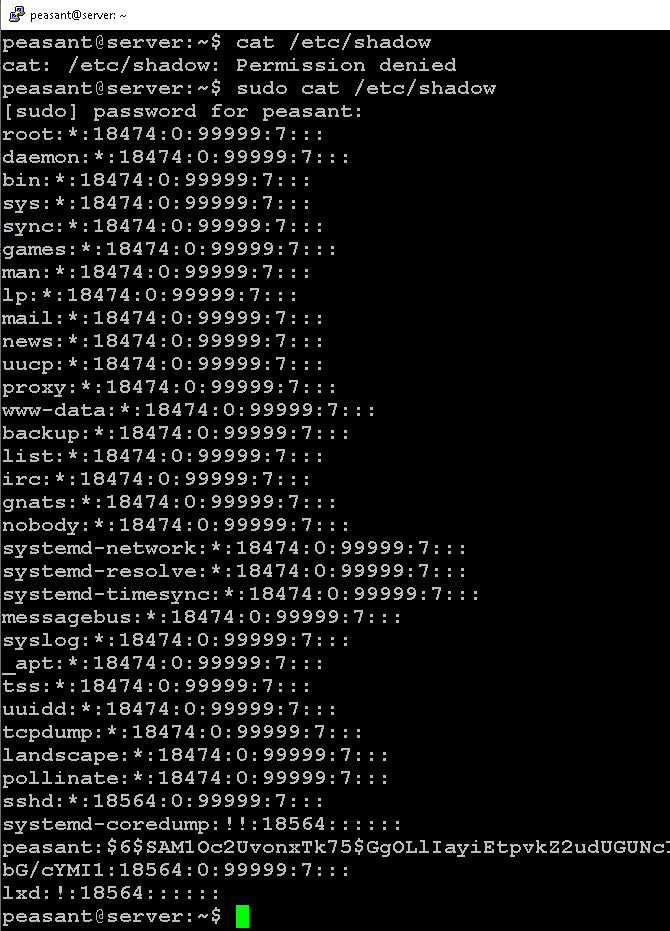 2) Хеш пароля и соль (* - вход запрещен, ! - учетная запись заблокирована)