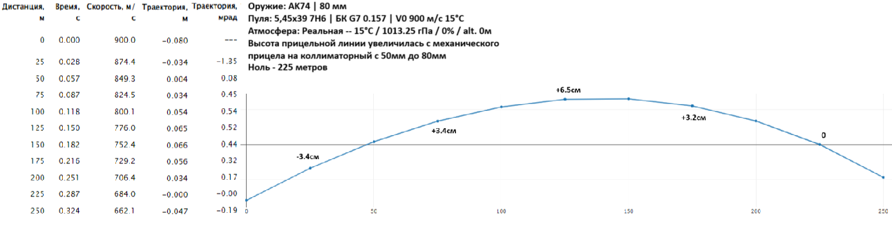 Можете воспользоваться баллистическим калькулятором с указанием АК-74, посмотреть траекторию