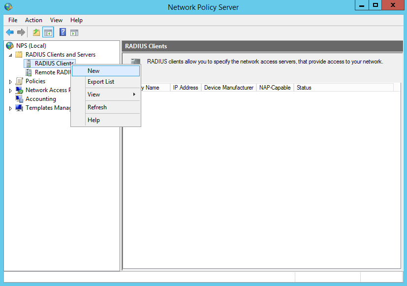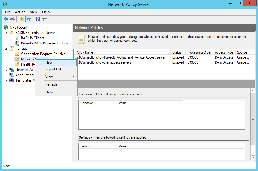 В консоли Network Policy Server: