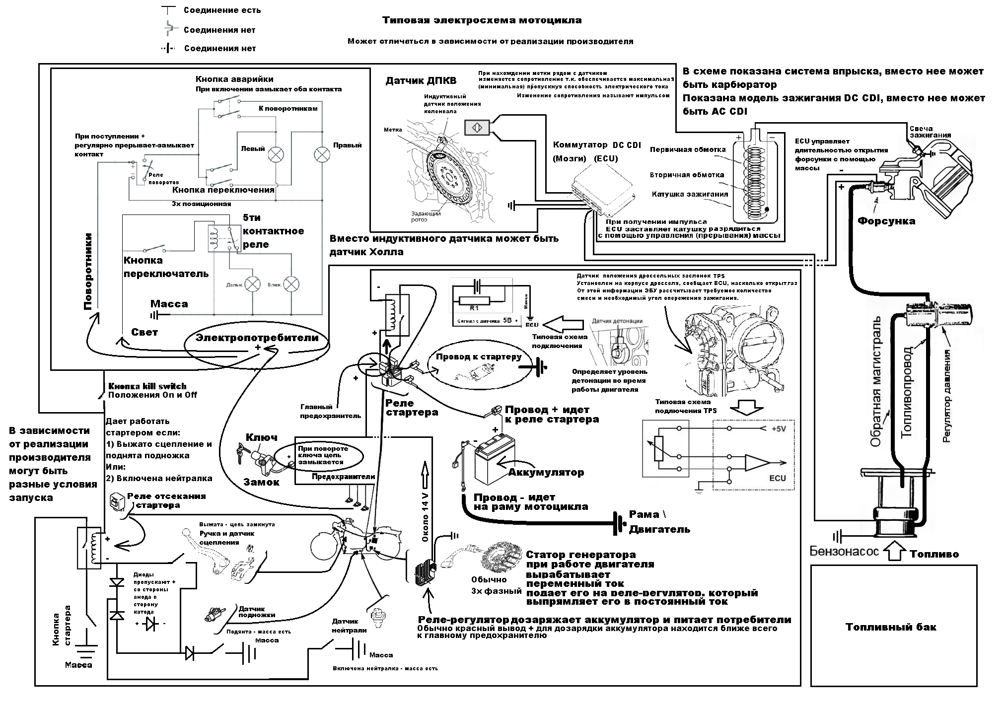 Постарался представить все основные элементы современных мотоциклов в электропроводке