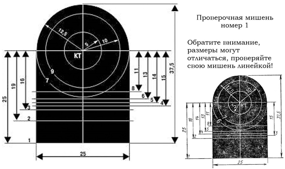 Проверка боя СВД производиться контрольной стрельбой Сначала идет проверка с открытым (механическим) прицелом Закрепляем проверочную мишень на 100 метрах, центр мишени на уровне глаз Пример, пули легли СТП вправо на 9см, вниз на 9см Корректировка вертикали: Корректировка горизонтали: Делаем повторные стрельбы, кучность по 4 пробоинам должна быть 8см