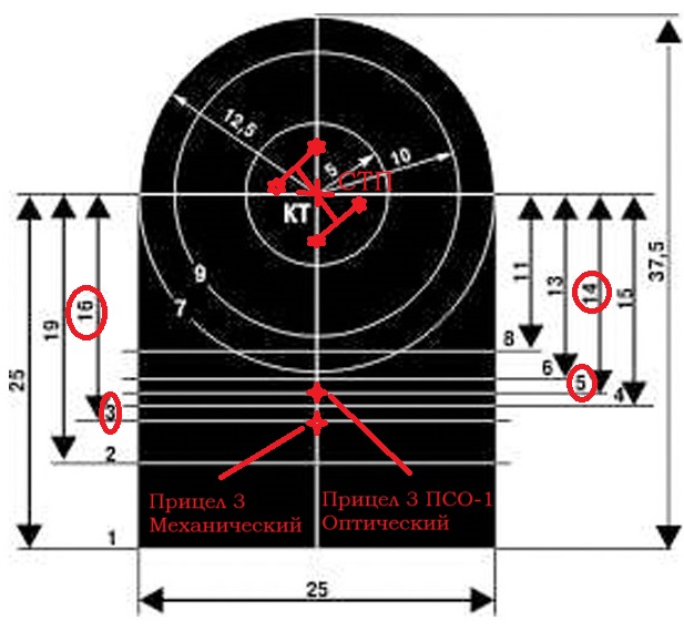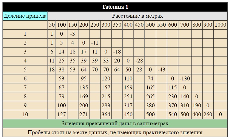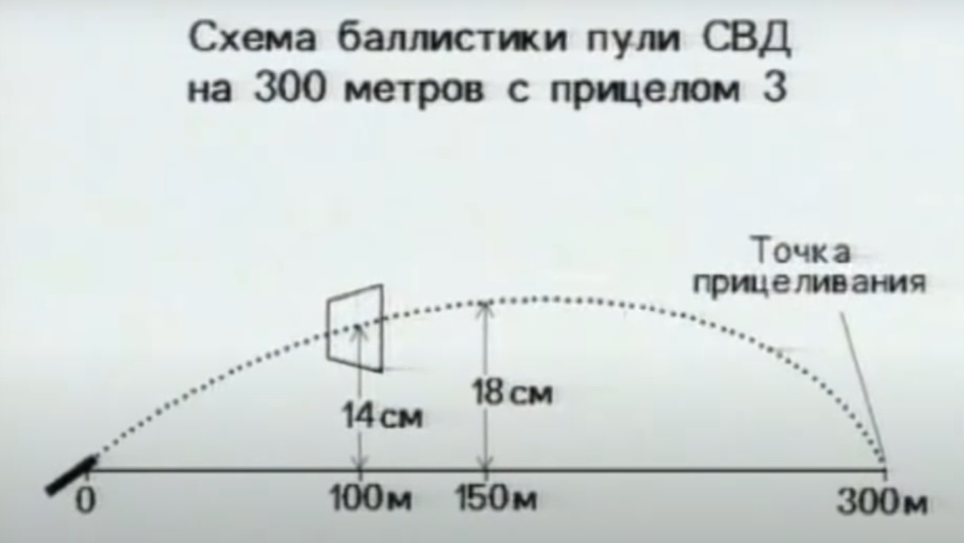 Превышение полета пули с прицелом 3 на 100 метрах для снайперской винтовки СВД: