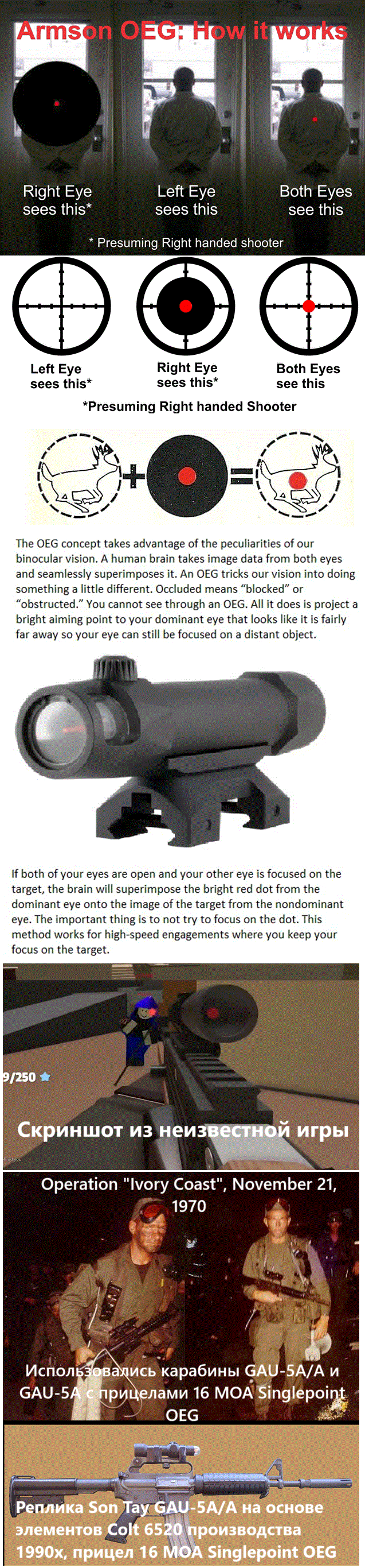 В 1970х годах появился прицел - Armson OEG (Occluded Eye Gunsight)