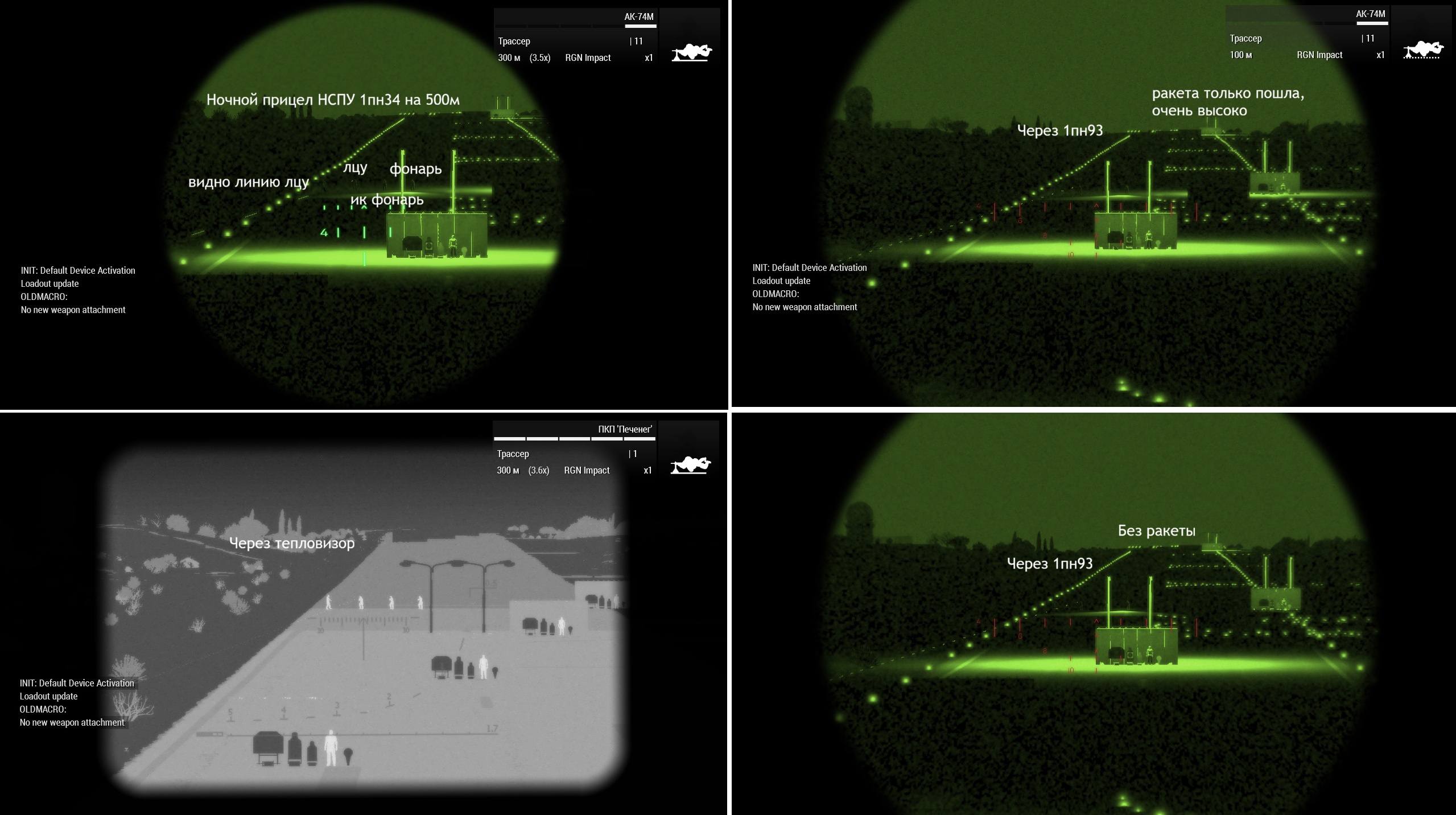 Во включенном ПНВ вы увидите их работу
