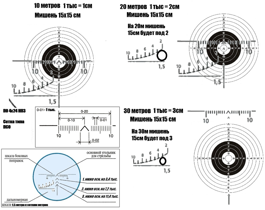 Сетка прицела ПО 4х24 НПЗ идентична ПСО, разница в шкале дальномера не 1.7м, а 1.5м