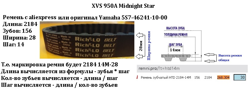 Пример разбора параметров ремня XVS950 Midnight StarПример разбора параметров ремня XVS950 Midnight Star На примере ремня ямахи миднайта - высота, толщина, шаг