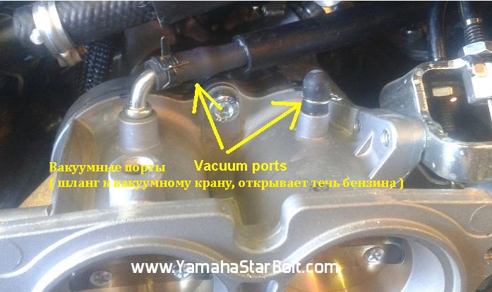 Вакуумный шланг от левого вакуумного порта ведет под бак. Это вакуум, который удерживает топливный клапан в открытом состоянии, поэтому вам придется втягиваться в него, иначе ваш двигатель умрет без топлива.