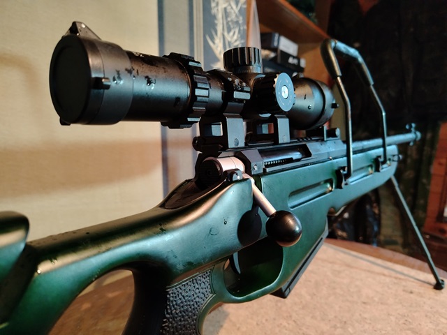 Прочный приклад оснащен сошкой, которая является неотъемлемой частью комплекта.