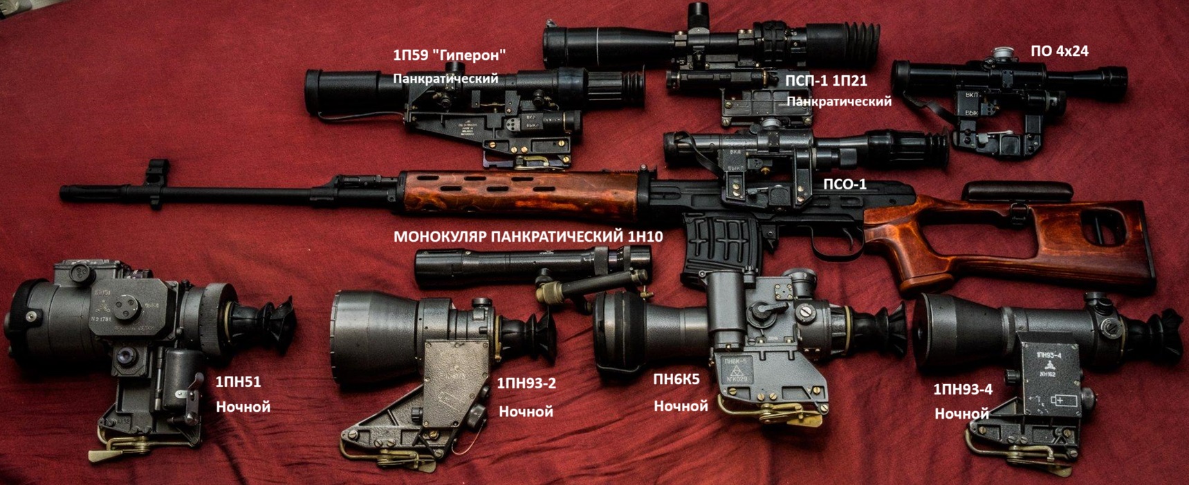 Установлен на СВД: Сверху, с лева направо: Под стволом: Ночные прицелы снизу, с права налево: