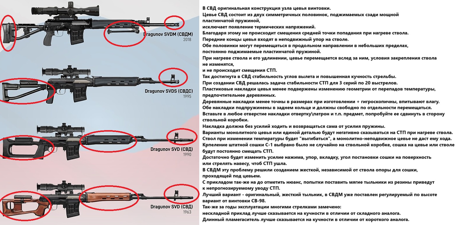 А лучше всего посмотреть отличное видео "Династия Драгуновых", где наглядно на самой винтовке показаны эти нюансы.