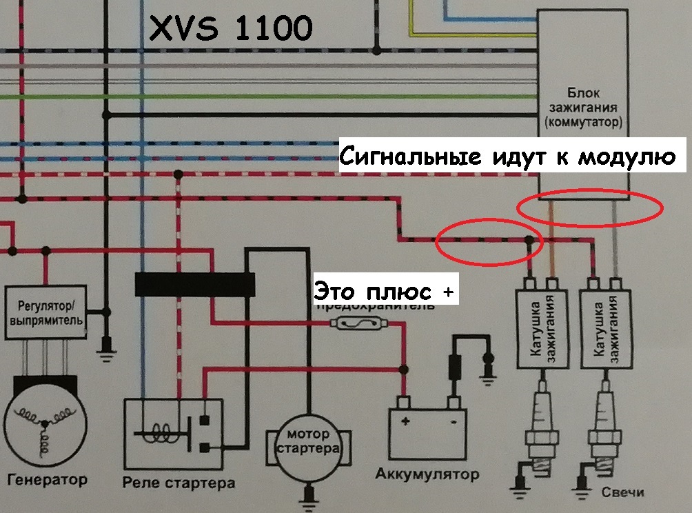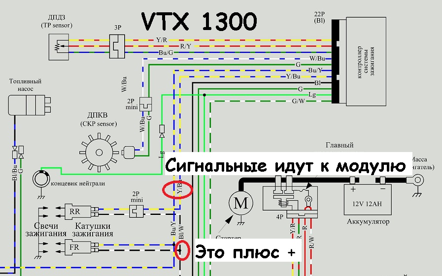 Нужная проводка у VTX 1300 Катушки: Положительный (+): Отрицательный (-):