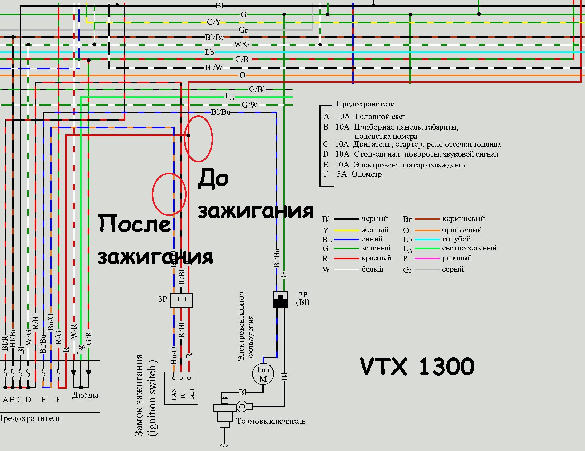 Проводное соединение Подсветка: Тахометр: ==================VTX 1300=======================