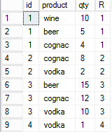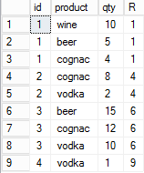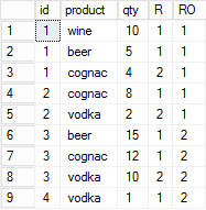 SELECT ROW_NUMBER() OVER( ORDER BY product, id ) AS rownum,
