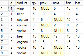 LAG(qty) OVER (PARTITION BY id ORDER BY id) AS [prev]