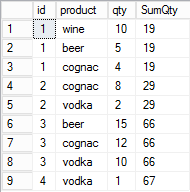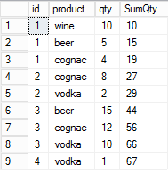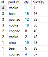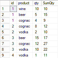 SUM(qty) OVER (ORDER BY id ROWS UNBOUNDED PRECEDING) AS SumQty
