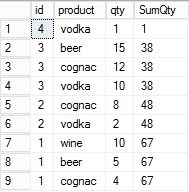 SUM(qty) OVER (ORDER BY id RANGE UNBOUNDED PRECEDING) AS SumQty