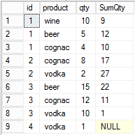 SUM(qty) OVER (ORDER BY id ROWS 1 PRECEDING) AS SumQty