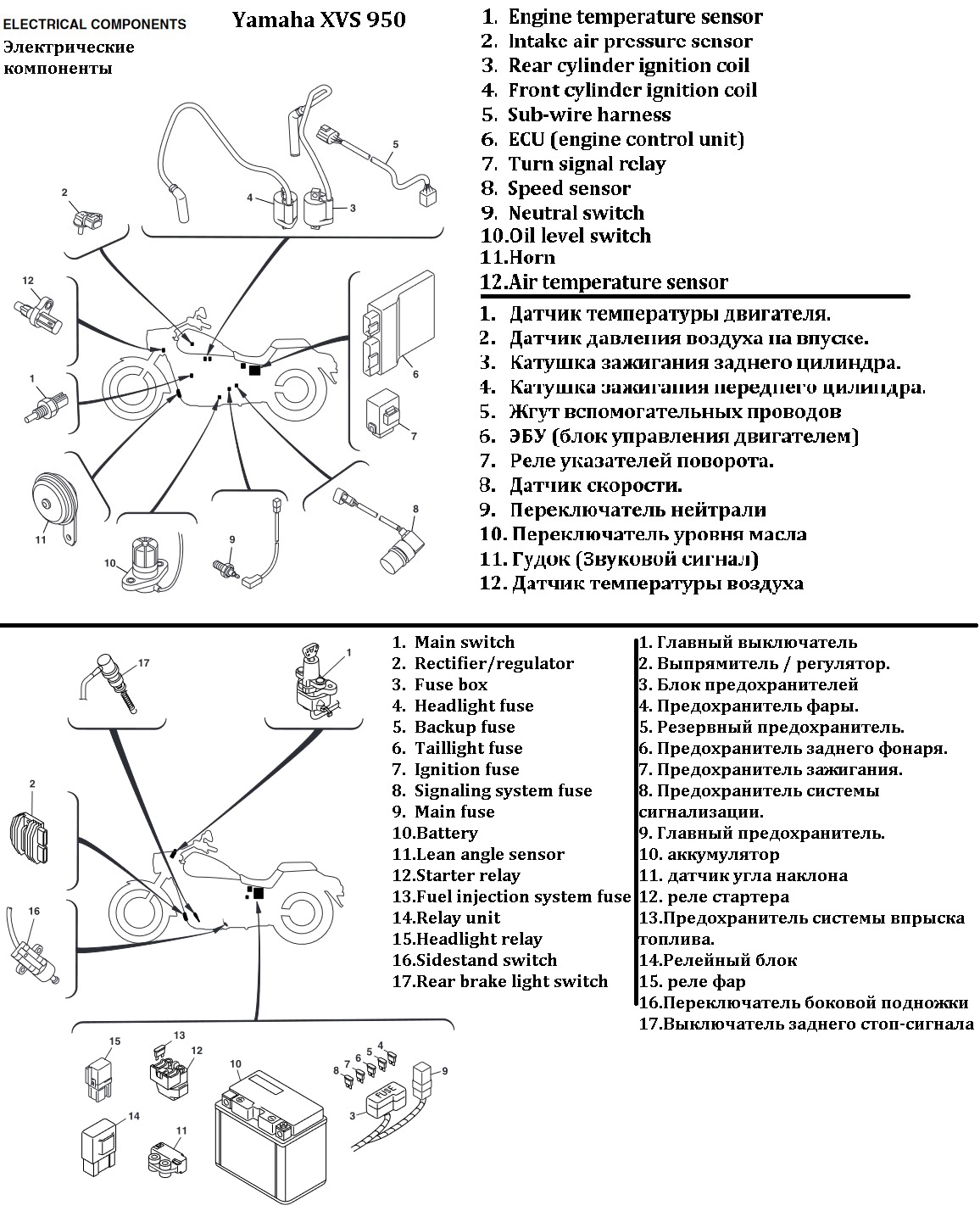Схема электрических компонентов Yamaha XVS 950